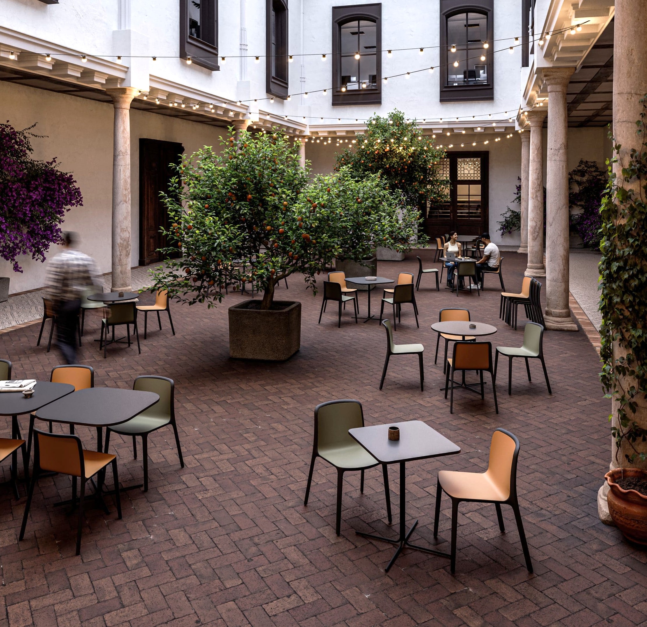 Patios, terrasses, cours ou rooftops… transformez-les en véritables espaces de vie grâce à un mobilier extérieur pensé pour les environnements professionnels.